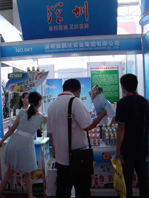 振鹏达实业集团作为食品饮料行业的领军企业受邀参团,成为深圳展团中的唯一食品饮料企业得到了各方面的高度关注,集团果蔬汁饮料“鲜绿园”系列一亮相便成为展会上的焦点,“天然、营养、健康”的产品理念受到了各级领导的肯定和赞扬,展会第一天,深圳市福田区区长一行仔细观看和详细了解振鹏达发展情况和“鲜绿园”产品信息,对振鹏达的发展予以肯定和赞赏,并祝愿振鹏达集团继续快速稳定发展。在参展的三天时间里,“鲜绿园”系列饮品引来众多的参观者试饮和购买,各地的客商争先索取“鲜绿园”的宣传资料,通过集团参展工作人员的详细介绍,数位客商对“鲜绿园”产品产生了极大的兴趣,并表达了合作意愿。