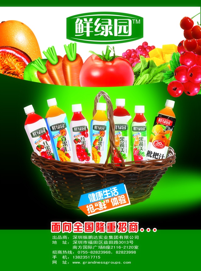 “鲜绿园”果蔬汁系列饮料这一天然、时尚、健康的饮料新贵品牌就是振鹏达集团精准把脉市场下的成功之作。2010年3月9日,振鹏达集团隆重推出了果蔬汁含量大于≧50%的四款“鲜绿园”混合果蔬汁饮料系列。旗下“果蔬美”混合果蔬汁系列、“红果乐”温带水果系列、“百果汇”热带水果系列,“枇杷王”珍贵饮品系列通过将多种果蔬汁混合,得到比单一果汁更多的营养成分,“鲜绿园”系列产品不含防腐剂、食用色素等食品添加剂,是一种低热量、高营养的健康饮料,一经面世便引起了市场的广泛关注,在2010年3月18日,经国内食品行业权威专家的评选, “鲜绿园”折桂群芳,荣获第三届中国食品行业“杰出营养创新奖”这一最具分量的荣耀,成为中国食品行业发展史上的传奇单品,获得了全面的肯定,史无前例的创造了中国品牌成长速度的奇迹,短时间便跻身国内一流饮料品牌行列。