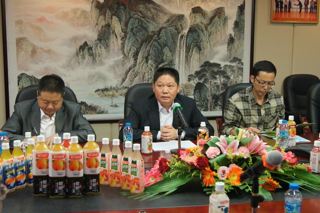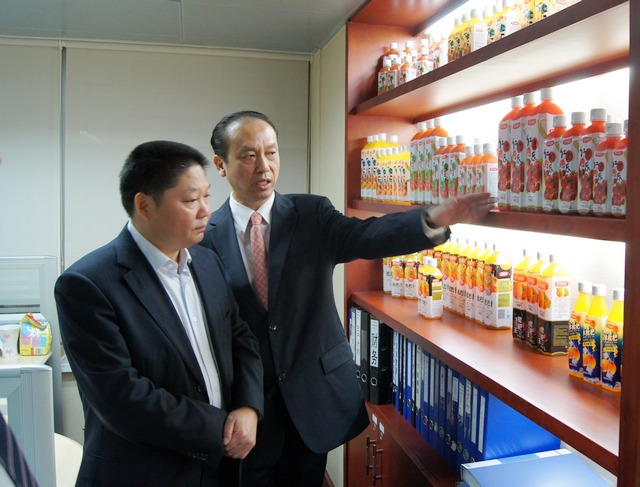 黄主席首先对刘兴军市长一行的到来表示热烈欢迎,并陪同刘市长一行参观了集团总部,随后,双方在会议室进行了会谈。会上,黄主席就集团的发展情况作了简要介绍,并就四川鲜绿园果蔬饮料有限公司的投资建设情况作了简短说明。黄育鹏表示,集团经过14年的快速发展,在社会各界的关注、在公司同仁的共同努力下,初步完成了绿色产业链的全面提升,实现了从工业生产到自主创新的重大转变。公司产品畅销中国及全球十几个国家和地区,广受好评!