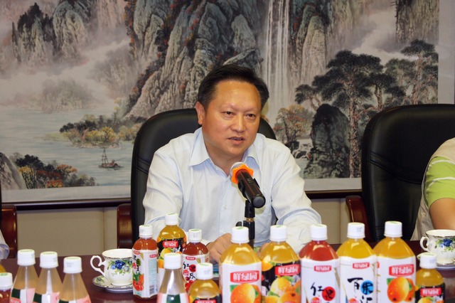 黄育鹏主席首先对卢景书记一行的到来表示热烈的欢迎,并陪同卢书记参观了集团总部办公室,随后,双方在会议室进行了会谈。会上,黄育鹏向卢书记通报了鲜绿园(湖北)食品饮料有限公司的建设情况及进度,并对当阳市委、市政府对当阳鲜绿园项目建设的大力支持表示衷心的感谢。黄育鹏说,集团公司经过多年的发展,现已成为一家集产、供、销于一体的多元化综合性大型股份制企业,2009年11月,其控股公司中华食品工业集团已在新加坡成功挂牌上市,2010年,集团公司作出了国际、国内两大市场并举的重要发展战略,决定在绿色产业链提升的基础上进军国内果蔬汁饮料行业,规划在三至五年时间内,将“鲜绿园”果蔬饮料打造成中国著名品牌,并在当阳、四川、山东等地投巨资打造绿色生态工业园,实现从田园到餐桌的全程绿色链条。