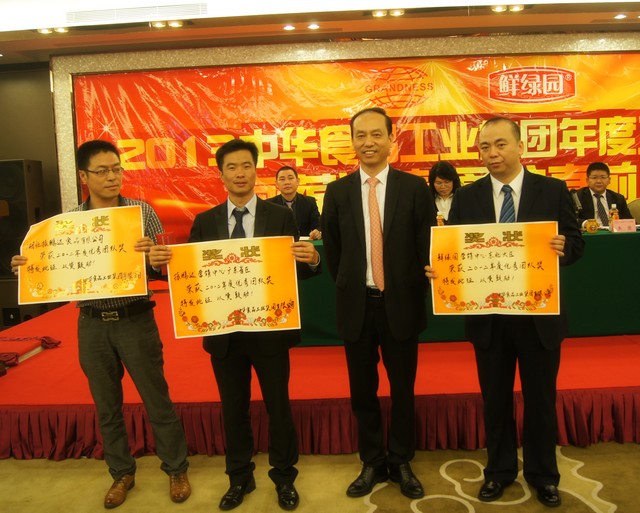 会上,集团公司主席黄育鹏做了题为《永葆激情 勇往直前》的会议发言,全面总结了中华食品2012年各项工作取得的显著成绩,并从集团公司品牌化发展、营销队伍建设、企业文化建设、企业管理等方面为集团公司2013年发展指明了方向,主席指出,品牌化发展是集团公司发展的必经之路,也是集团公司转型的重要举措,自集团公司以差异化战略进入饮料市场以来,就不断在塑造“鲜绿园”果蔬汁饮料品牌,并成功抓住市场空白,开创枇杷汁饮料品类,成为品类开创的佼佼者,集团公司要勇于探索,不惧前行,努力将鲜绿园打造成果蔬饮料行业一线品牌,并成为枇杷汁领导品牌,将振鹏达罐头打造成罐头行业一线品牌,最终实现集团公司品牌化发展战略。主席强调,集团公司发展要坚持公司的“忠诚、敬业、团结、创新”的企业精神,创新就要我们海阔天空的想,将创新思维落到实处,就要求我们脚踏实地地干,在营销工作中要结合实际,从营盘、渠道、通路等方面入手,千方百计降低生产成本,想方设法提高销售总量,为完成集团2013年工作规划打下良好的思想基础。