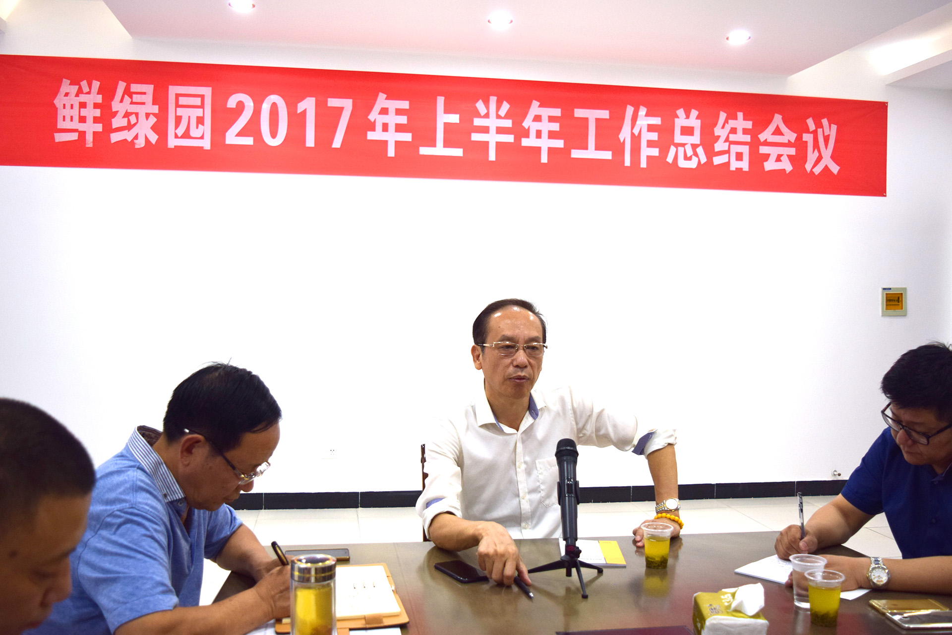 集团董事局主席黄育鹏致开幕辞。鲜绿园集团副总裁朱俊在大会上发言、湖北工业园总经理彭清云、四川工业园总经理胡彬、营销副总监林永峰、各事业部总经理、各职能部门分别向大会做工作汇报,营销总监张建安做了鲜绿园上半年销售总结和下半年销售规划工作报告。