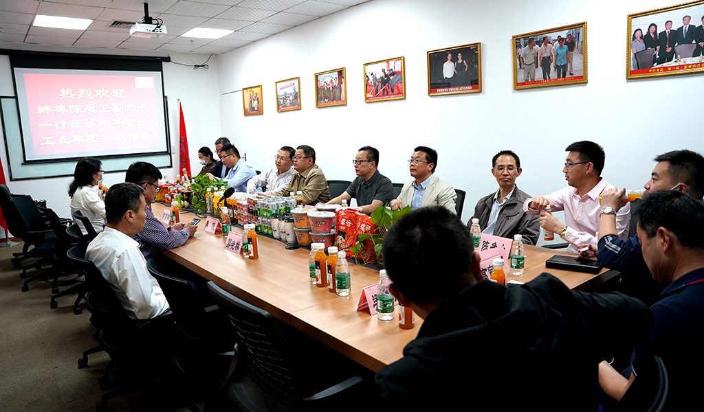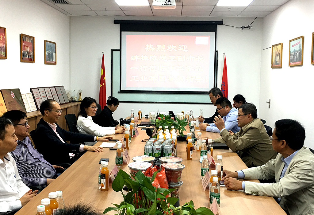2020年11月11日,安徽省蚌埠市政府代表团来到深圳集团总部进行了参观考察,考察团以市政府陈忠卫副市长带队、市商务和外事局局长黄善歧、市商务和外事局副局长赵炉生、市招商中心副主任王振宇、市政府主任科员高家康、高新区副主任卞家涛、高新区商务局局长严要武、市商务外事局会展促进科科长邹顺市、市商务外事局会展促进科副主任科员梁超市、固镇县县政府副县长张浩、县民政局局长刘正义、县科技局局长王怀凤、县商务局副局长张晓梅一行陪同。新加坡中华食品工业集团董事局主席黄育鹏、副总裁朱俊、黄育珊、营销总监郭晓林、人资行政总监魏志勇5名集团高管参与接待。