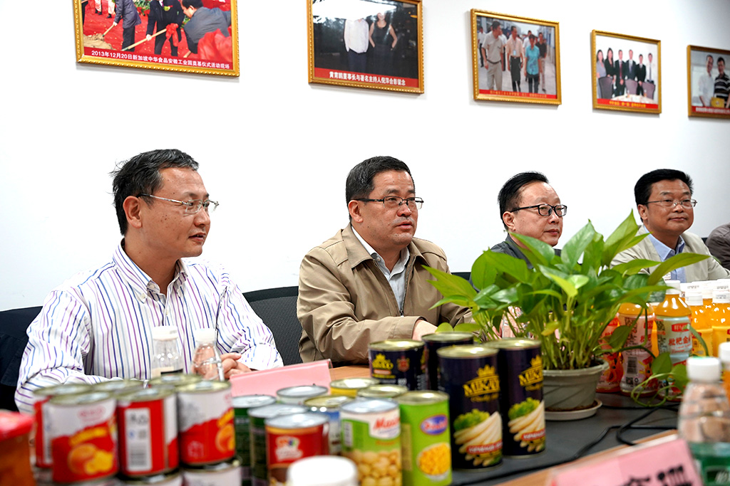 考察期间,中华食品工业集团黄育鹏主席向陈市长一行详细地介绍了集团的相关情况,中华食品成立20多年以来立足农业,以绿色食品深加工为主要业务,向国内外消费市场提供最新的绿色健康饮品,产品深受消费者喜爱。同时向市、县两级政府介绍了中华食品工业集团位于国内的五大工业园区及建设规模。重点介绍了集团位于安徽蚌埠市固镇县经济开发区的安徽工业园的生产经营情况,及安徽工业园二期开工项目规划,拟加大水果蔬菜罐头在安徽的生产规模。