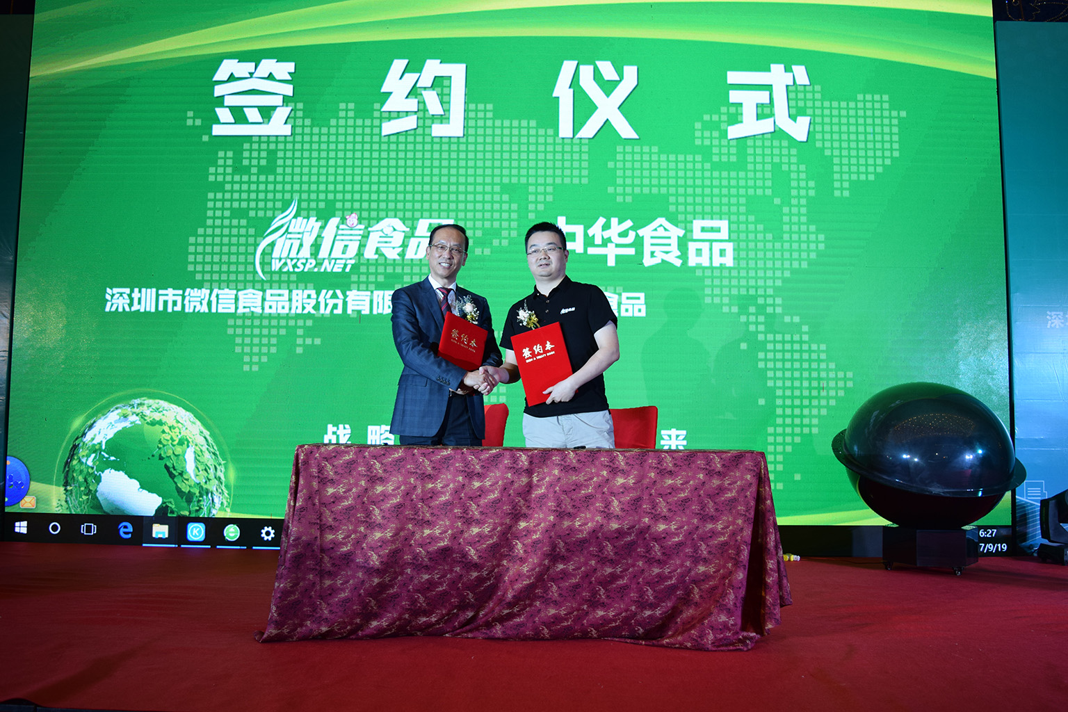 2017年9月19日,深圳市微信食品股份有限公司”物联网-云平台发布会”在深圳市京基100宴会厅隆重发布,此次发布会标志着微信食品正式布局无人售货机领域,中华食品董事局主席黄育鹏携旗下鲜绿园枇杷汁受邀出席,继2016年12月中华食品与微信食品全面合作之后,再次以鲜绿园枇杷汁品牌签约微信食品无人零售机系统,共同开创无人零售新时代。